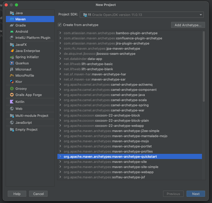 그리고 maven-archetype-quickstart 클릭 후 Next 버튼을 클릭합니다.