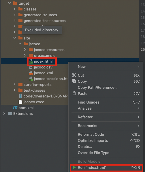 위 사진처럼 target -> site -> jacoco -> index.html 파일이 있는 게 보이실 겁니다.
